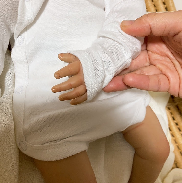 リボーンドールは心を込めて1つ1つ手作業で制作しておりますが、製造過程でできるペイントや植毛のヨレやゆがみ、ボンドのはみ出し等がある場合があります。丁寧に制作しておりますが、既製品のような頑丈さや完璧さはありませんのでご了承頂けたら幸いです。